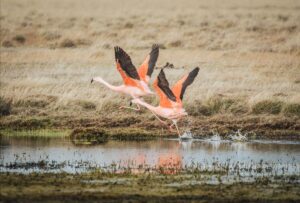 Flamencos en el campo Morro Chico de la familia Gallie en Santa Cruz. Un ecosistema saludable es fundamental para un sistema productivo sostenible. Crédito: Celine Frers.