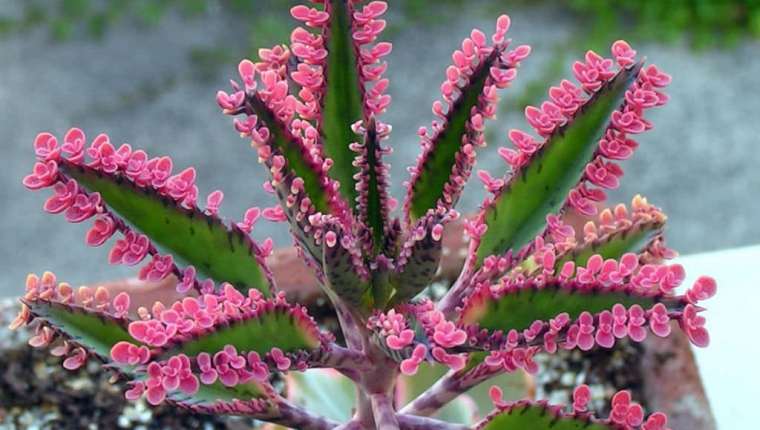 -Kalanchoe gastonis-bonnieri (Bryophyllum gastonis-bonnieri): Lleva este nombre en honor al botánico francés Gaston Bonnier. Esta planta tiene las hojas más grandes, popularmente llamada “Oreja de burro”. Los nombres populares varían según los países .