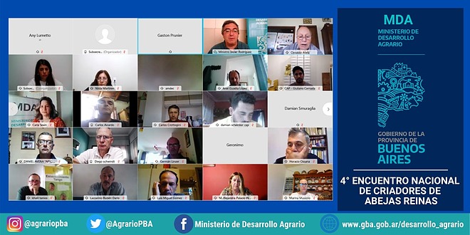 General Belgrano, 29 de marzo (PR/21) .– El Ministro de Desarrollo Agrario de la provincia de Buenos Aires, Javier Rodríguez, encabezó hoy el 4° Encuentro Nacional de Criadores de Abejas Reinas organizado por nuestra Chacra Apiario Pedro Bover bajo la modalidad virtual, donde anunció la realización del Concurso Provincial de Mieles, cuya premiación se llevará adelante en la Semana de la Miel.