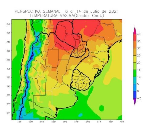 Buenos Aires, 22 de julio (PR/21).– Al inicio de la perspectiva continuarán avanzando los vientos del trópico, cubriendo la totalidad del área agrícola, y provocando varios días con temperaturas sobre lo normal.