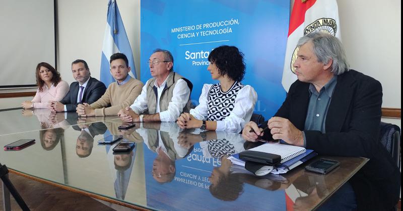 A horas del arranque de AgroActiva, se realizó una conferencia de prensa en el Ministerio de la Producción de Santa Fe. Estuvieron presentes el ministro Daniel Costamagna; Rosana Nardi, presidenta de Agroactiva; Marcelo Comelli, subsecretario de Pequeña y Mediana Industria e Innovación; Ignacio Tanzi, presidente de ASIMA – Asociación Santafesina Industrial de la Maquinaria Agrícola-; Cristian Alemán, gerente zonal Banco Nación Santa Fe Centro y Melina Gabatorta, secretaria de administración del Ministerio de Producción, Ciencia y Tecnología.