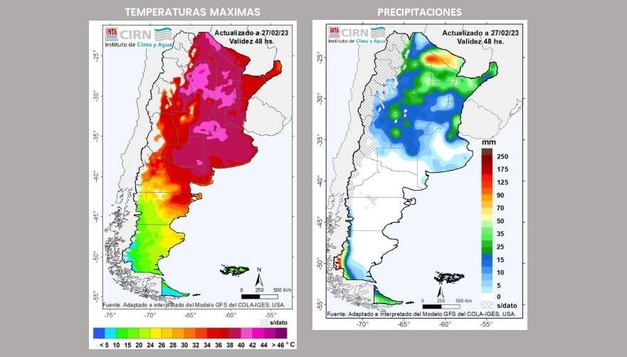 Buenos Aires, 28 febrero (PR/23) — Las principales zonas productivas de la región pampeana ya están en alerta amarilla por temperaturas extremas y se espera que para el fin de semana se superen los 40°C. Las lluvias, escasas como toda la campaña.