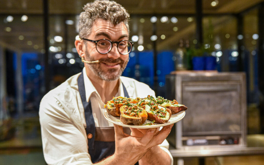 Para los más dulceros, el Ministerio de Turismo de la provincia de Buenos Aires invitó a Micaela Montero, quien elaboró una Pecán Pie mientras contaba sobre la producción de la nuez pecán en el Delta bonaerense y sus beneficios para la salud. También estuvieron Valeria Ricciardi (@valeriapatissiere) y Silvia Chus (Directora de Cielos Pampeanos) deleitando con sus alfajores artesanales de almendras, los mismos que probó el Dibu Martínez y ya no puede dejar de comerlos.