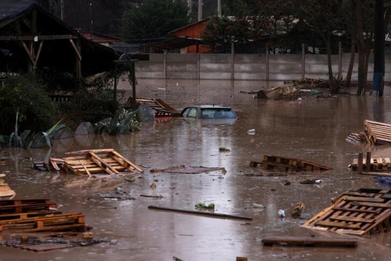 FOTO: Un automóvil queda sumergido en las aguas tras las fuertes lluvias en Santiago, Chile.REUTERS/Iván Alvarado