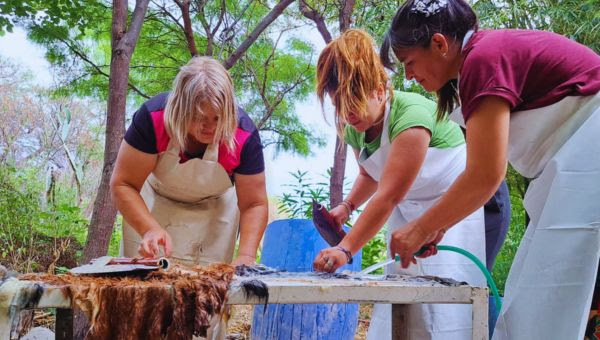Las productoras –de diferentes departamentos del Valle Central de Catamarca, en Capayán, Capital y Valle Viejo– se identifican como “Curtiendo nuestras raíces”, el grupo se conforma por 14 mujeres y actualmente sumaron 6 hombres. Gracias al trabajo en conjunto con el equipo del INTA se encuentran próximas a recibir su matrícula como cooperativa y su comercialización anual sumó más de 1300 cueros de diferentes curtidos en forma artesanal en un proceso que dura 40 días.