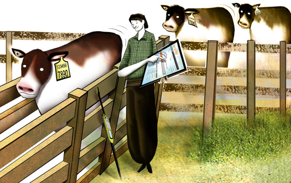 “Uno puede leer la caravana visualmente, la tarjeta tradicional o el botón tiene un número y el productor lo puede tipear en la tablet para buscar la ficha de ese animal y actualizarla”, planteó.