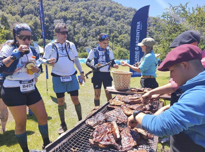 Más allá de los campamentos, la carne argentina también fue la gran atracción en las largadas y llegadas de las carreras, con degustaciones y show de fuegos junto al Lago Lácar en San Martín de los Andes.