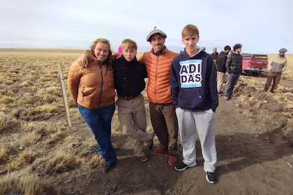 Mariano y Cintia y sus dos hijos, Santino y Francisco, viajan con frecuencia los 180 km que separan a La Tapera de Río Gallegos, y hoy contagian optimismo. Reconocen que pasaron tiempos muy difíciles, entre la sequía y la gran nevada del 2024, pero el haberse sumado al POA les devolvió el optimismo.