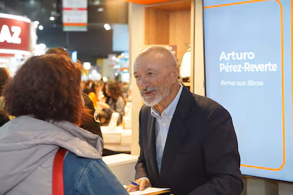 “Celebro estar aquí de nuevo en Buenos Aires”, saludó el invitado, best seller internacional con obras como El club Dumas, Territorio comanche y La Reina del Sur, que luego firmó ejemplares en el stand de Penguin Random House. “Lo amamos”, dijo a este diario una lectora; otra mostró que le llevaba de regalo un cuadro con frases del escritor.