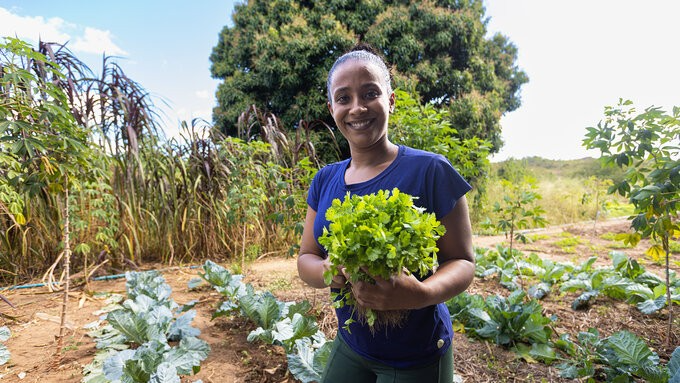En el noreste del Brasil, en el árido paisaje de la Caatinga, la agricultora Eusébia Bezerra está transformando tierras secas y estériles en un huerto diversificado, con el apoyo del proyecto Prácticas agroforestales sostenibles y conservación de la biodiversidad, dirigido por la FAO y financiado por el FMAM.