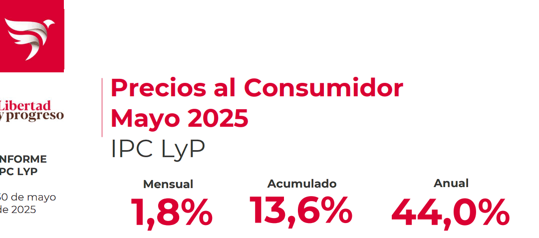 Buenos Aires, 1 de junio (PR/25) .- El IPC LyP registró un incremento del 1,8% en mayo, lo que representa una desaceleración de 1,0 punto porcentual respecto al dato oficial de abril (2,8%). Sería el IPC mensual más bajo desde mayo 2020, aunque si se excluyen los años de la pandemia, sería la menor desde noviembre de 2017.