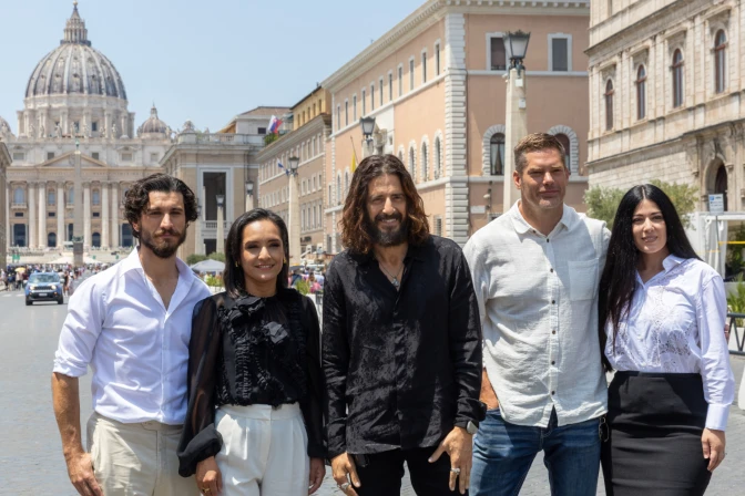 Roumie, varios actores de la serie y el creador y director del proyecto, Dallas Jenkins, están esta semana en el Vaticano tras haber concluido tres semanas de rodaje en el sur de Italia, donde filmaron las escenas de la Crucifixión para la sexta temporada, que se estrenará el próximo año.