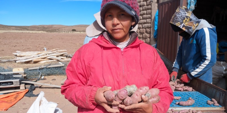 “Pues decidimos venirnos a vivir al campo -sigue, Cruz-, que era nuestra cultura en la que nos habíamos criado, mientras los hijos quedaron siempre estudiando en La Quiaca y los traíamos los findes de semana. Mi abuelo, para comenzar nos regaló 6 bolsas de semillas, unos 300 kilos de papas andinas, de variedades Sani e Imilla (que significa muchacha, en quichua) en un cuarto de hectárea. Después fuimos aumentando, a una, dos y a tres hectáreas de producción, todo dependiendo del agua de lluvia, que era escasa”.