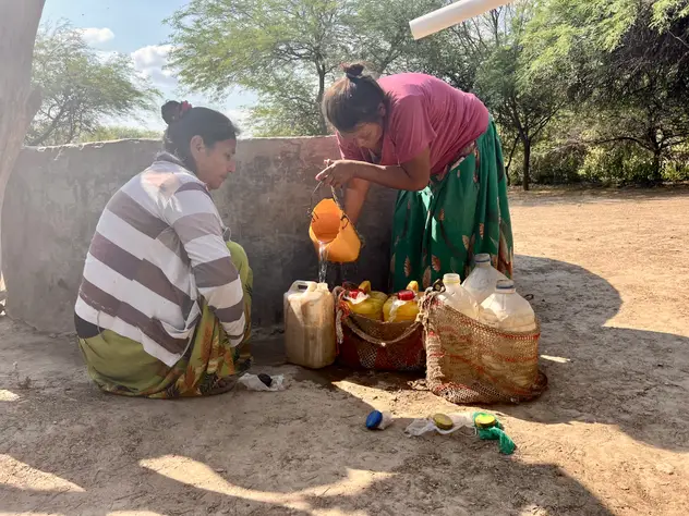 Así, camina 300 metros bajo un sol que le quema su piel ya curtida hacia el aljibe comunitario de El Algarrobal, un asentamiento niva?le ubicado a apenas unos pasos de la frontera con Paraguay. Viste una remera rosa de mangas cortas, una pollera verde estampada y unas ojotas. Su pelo está atado en un rodete con una gomita y por las patillas le empiezan a caer unas gotas de sudor. Siente el calor en todo el cuerpo. Cuando llega al aljibe, baja un balde con una soga para cargar los bidones con agua y aprovecha para refrescarse con la mano.