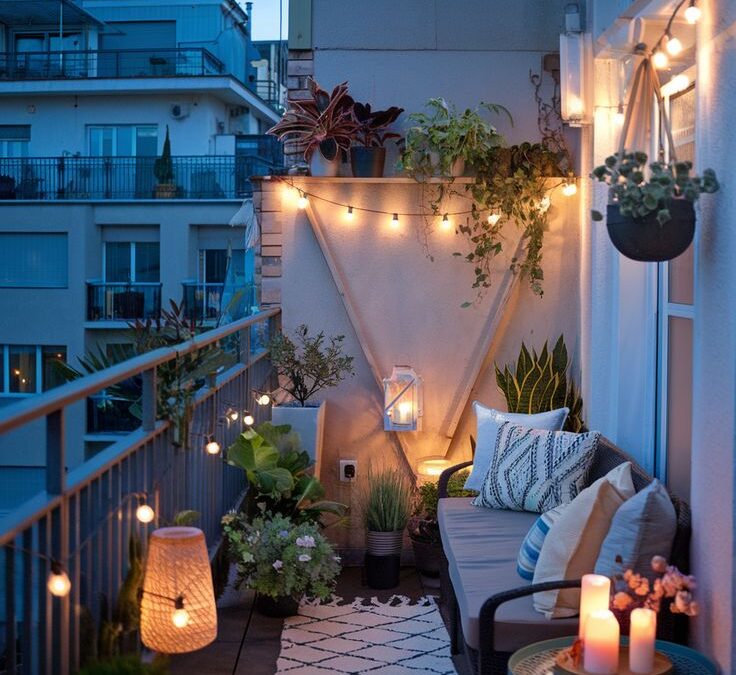 Puede ser un ramo de flores en jarrón, una mesa pintada por vos, una guirnalda de hojas secas, un mantel lindo o un centro de mesa improvisado. Son detalles mínimos que cuentan tu estilo y hacen que el balcón se sienta más hogar y menos “espacio de paso”.
