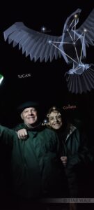 Foto izq: Búsqueda nocturna debajo de una constelación