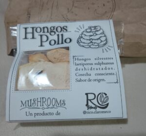 Este es uno de los hongos de la zona de Claromecó que Emilia vende deshidratados y que tiene la consistencia de la carne de pollo, de ahí el nombre. En el paquete: una receta