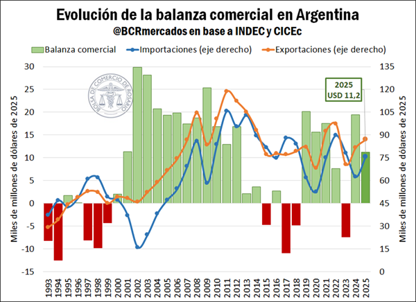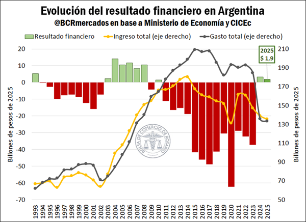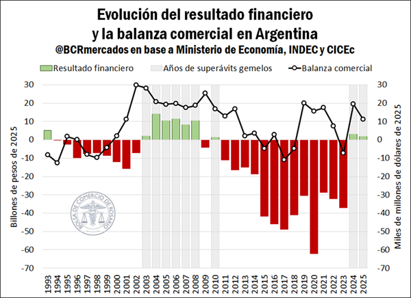 En 2025, Argentina volvió a alcanzar un resultado financiero positivo junto con un superávit en la balanza comercial. Es la primera vez desde 2007-2008 que se encadenan dos años con ambos saldos positivos.