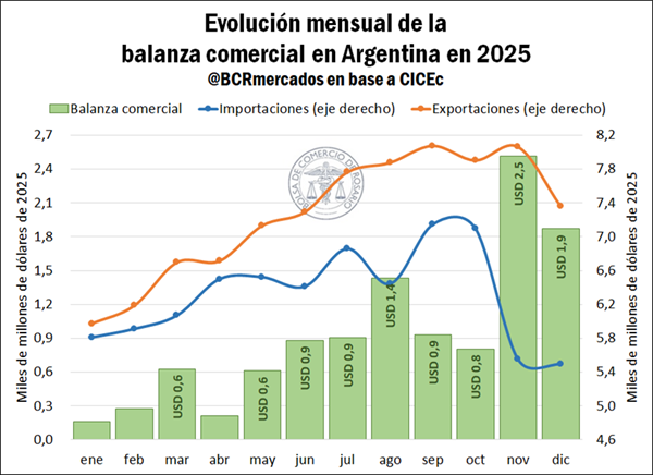 Rosario, domingo 1 marzo (PR/26) — Similar a lo observado el año previo, durante 2025 el programa económico en Argentina continuó apoyándose en el equilibrio fiscal, con el principal objetivo de combatir la inflación y corregir los desequilibrios monetarios. Sumado a ello, muchas medidas, como la reducción de derechos de exportación, apuntaron a fomentar las ventas externas y fortalecer el ingreso de divisas.