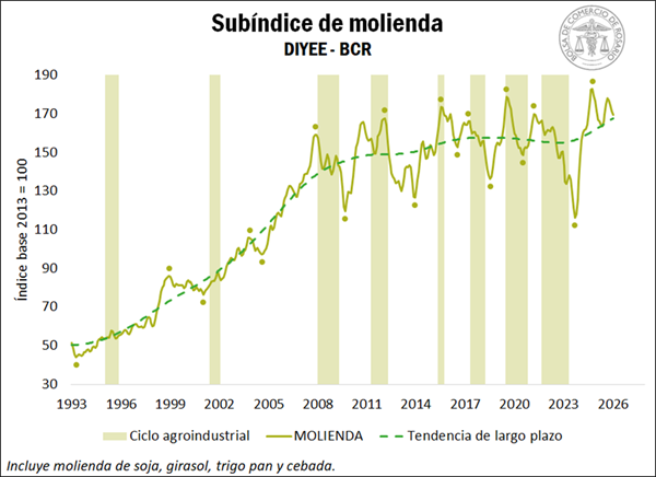 El Índice de Actividad de la Cadena Agropecuaria de la Bolsa de Comercio de Rosario (BCR) marcó en enero un alza mensual del 1,2% y alcanzó un nuevo récord histórico, impulsado por una cosecha 2025/26 que se perfila como la mayor de la historia.