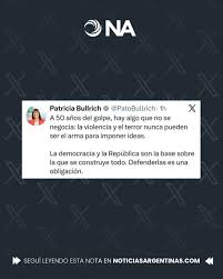 Buenos Aires, martes 24 marzo (PR/26) – La jefa del bloque de senadores de La Libertad Avanza (LLA), Patricia Bullrich, sostuvo este martes que, a 50 años del Golpe de Estado, “hay algo que no se negocia” y es que “la violencia y el terror nunca pueden ser el arma para imponer ideas”.