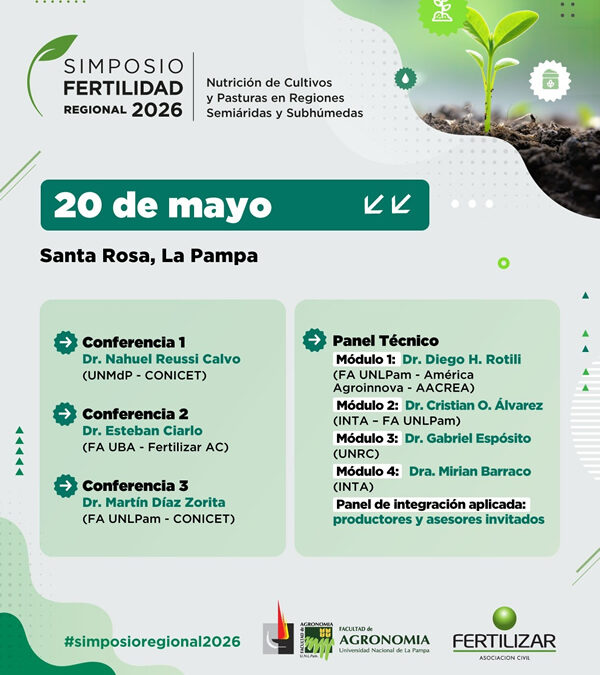 Buenos Aires, 26 de marzo (PR/26) -. El próximo 20 de mayo de 2026, se realizará en el Hotel Mercure en Santa Rosa, La Pampa, el Simposio Regional FERTILIDAD 2026, un encuentro técnico clave que abordará la nutrición de cultivos y pasturas en zonas semiáridas y subhúmedas, bajo el lema “Innovación y tecnologías para que el agua rinda al máximo”.