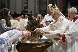 El agua derramada sobre la cabeza de cada uno de ellos, luego la túnica blanca que se visten antes de recibir el signo del óleo santo, sello del Espíritu Santo. «Caminad siempre como hijos de la luz», las palabras del Obispo de Roma a estos neófitos de la Iglesia que celebran también el sacramento de la Confirmación. Son ellos quienes participan en el Ofertorio de la Eucaristía a la que acceden por primera vez.