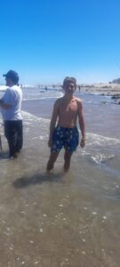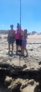 El joven Santino, eximio pescador, y su familia de Tres Arroyos, en la foto