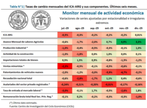 El Índice Compuesto Coincidente de Actividad Económica de Argentina (ICA-ARG) presentó una variación del 0,01% en diciembre respecto al mes anterior y del -0,8% con relación al registro de diciembre 2024.