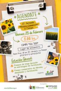 El referente hará foco en que el manejo de nutrición balanceada con nitrógeno y fósforo, y mejorada con nitrógeno, fósforo, azufre y zinc, que son las dos estrategias que muestran mayores beneficios en crecimiento sobre el control sin fertilizar o solo aplicando algo de nitrógeno y fósforo en la siembra, que es el planteo frecuente en gran parte del área girasolera.También se presentará un ensayo comparativo de híbridos comerciales, de la mano de empresas semilleras y se llevará a cabo una charla sobre estrategias de fertilización de pasturas, a cargo del equipo del INTA.La agenda se completa con una disertación del Lic. Iván Ullman, sobre “Perspectivas de Mercados Agropecuarios”.El punto de encuentro será en el Campo “Las 500”, Ruta Prov. 18 Km 30, próximo a Macachin, en el departamento de Atreuco, La Pampa.La actividad es libre y gratuita, con cupos limitados. Para más información, escribir a info@fertilizar.org.ar