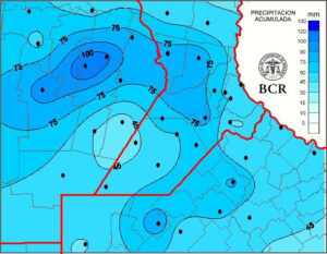 Rosario, lunes 10 marzo (PR/25) — Las lluvias del fin de semana dejaron registros importantes en la región núcleo, con acumulados que oscilaron entre 40 y 50 milímetros en promedio, aportando una recuperación clave en el balance hídrico. En algunos puntos, los valores fueron aún más elevados, con picos de 102 milímetros en Bell Ville (Córdoba), 87 en Clason y 79 en Montes de Oca (Santa Fe), además de acumulados destacados en el norte de Buenos Aires, como los 78 mm en Rojas o los 86 en Pinto.