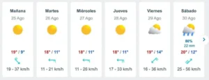 Para mitad de semana se anticipa un miércoles con cielo algo nublado durante toda la jornada, acompañado de temperaturas de entre 9 y 19 grados.
