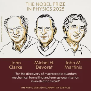 El premio Nobel de Física 2025 fue otorgado a John Clarke, Michel H. Devoret y John M. Martinis. Es por sus descubrimientos en mecánica cuántica.