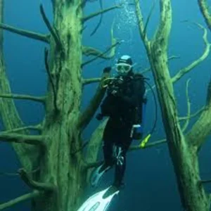 Uno de los sitios más icónicos del país está en Neuquén. Allí, el árbol Sumergido de Villa Traful, un ciprés de más de 30 metros que permanece erguido en el fondo del lago por un derrumbe antiguo, permite bucear alrededor del tronco, observar su base y sentir la sensación de “volar” entre sus ramas. Es una experiencia única en la región, recomendada para buzos certificados.